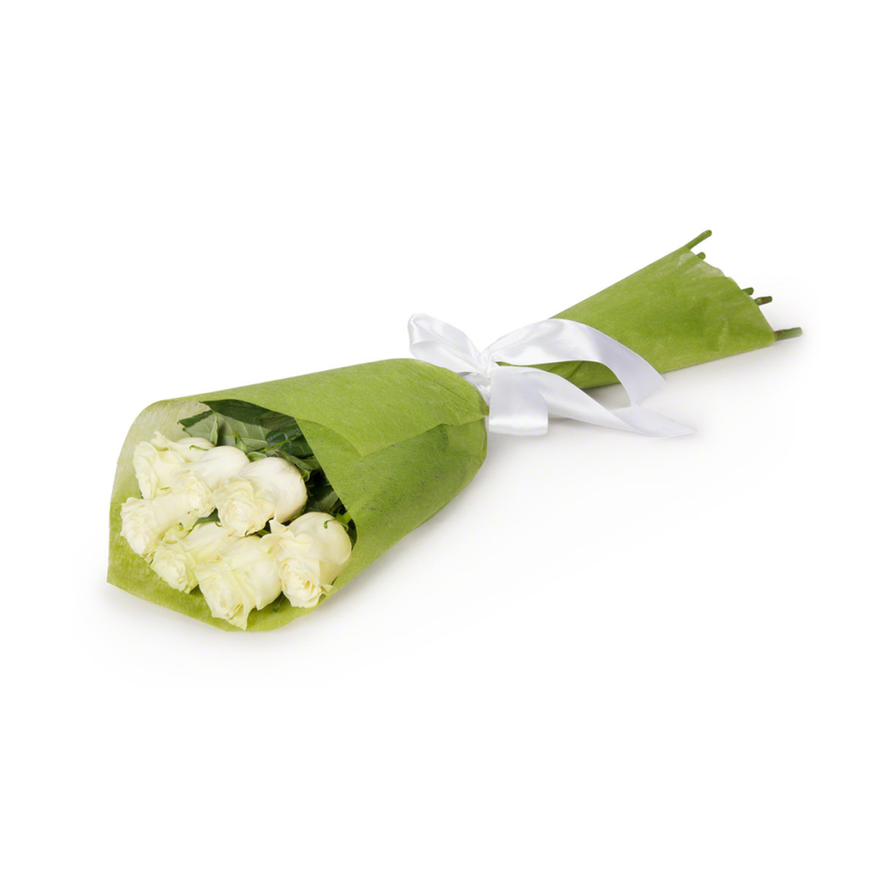 Элегантный букет из белоснежных роз в благородной фетровой упаковке — воплощение чистоты и божественной гармонии.