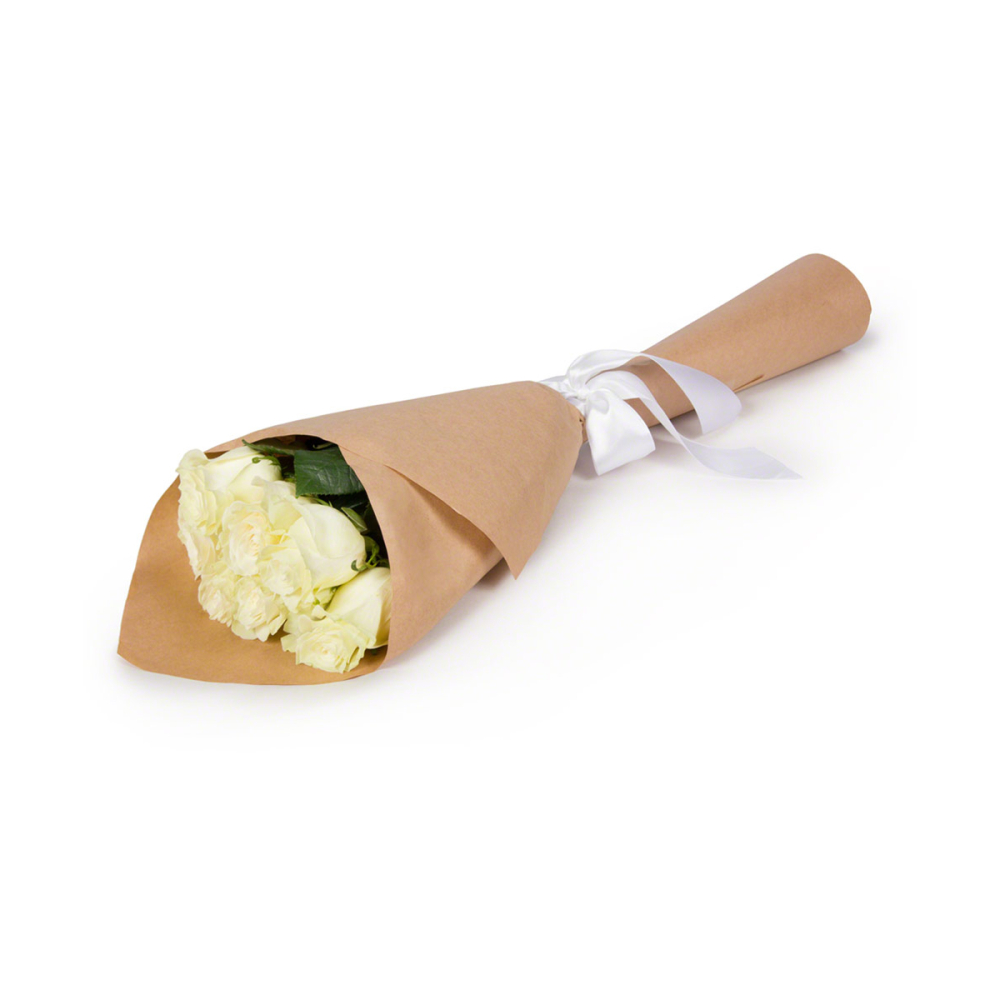 Букет из 7 белых роз в крафте