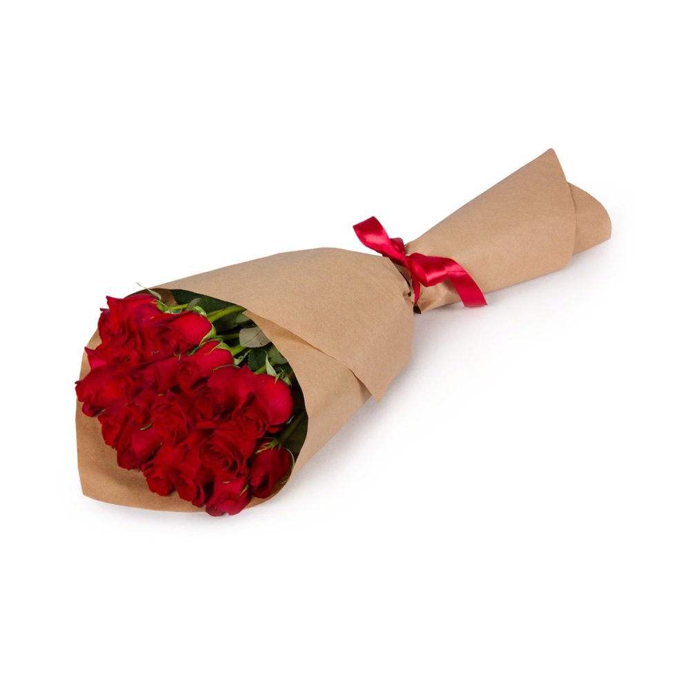 Элегантный букет из красных роз в экологичной крафтовой упаковке — это современное проявление искренних чувств.