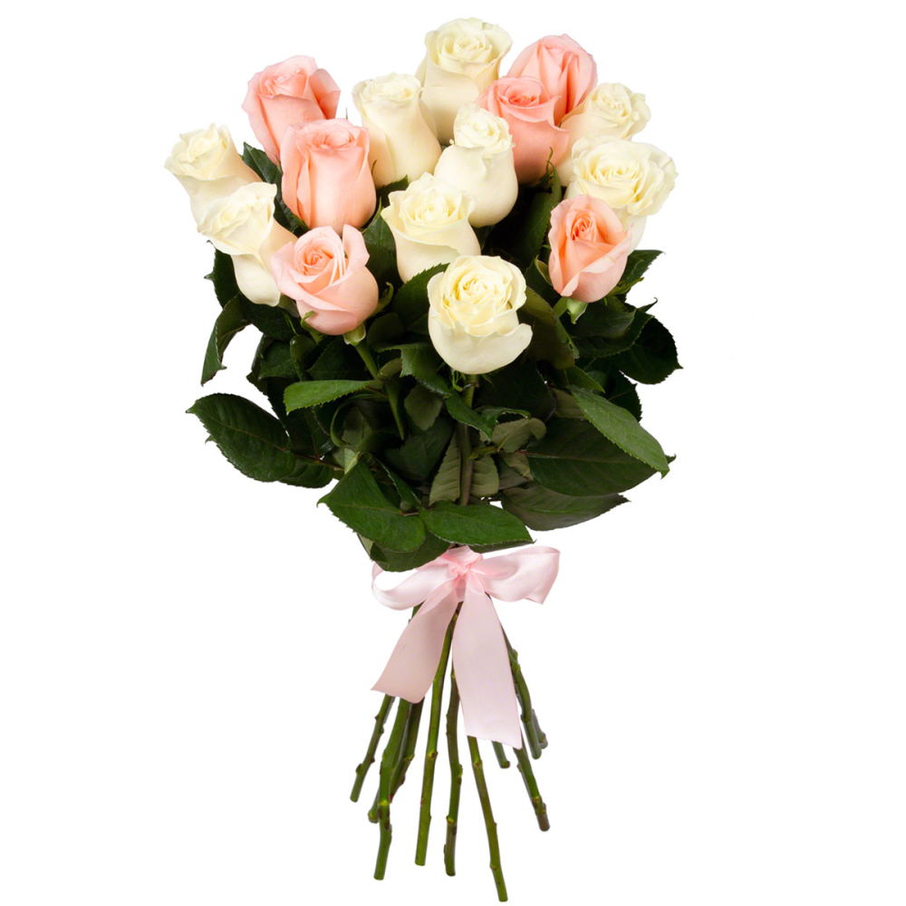 Букет из 15 розовых и белых роз