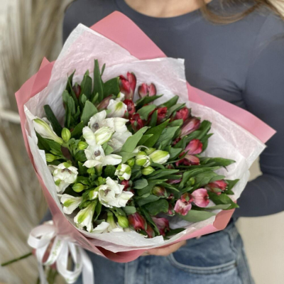 Яркий букет «Люблю» сочетает красные и белоснежные альстромерии — символ гармонии страсти и чистоты чувств. Эти удивительные цветы с узорчатыми лепестками расскажут о вашей любви лучше любых слов. Идеальный выбор для признания, годовщины или романтического сюрприза. Доставка альстромерий в Вытегре.
