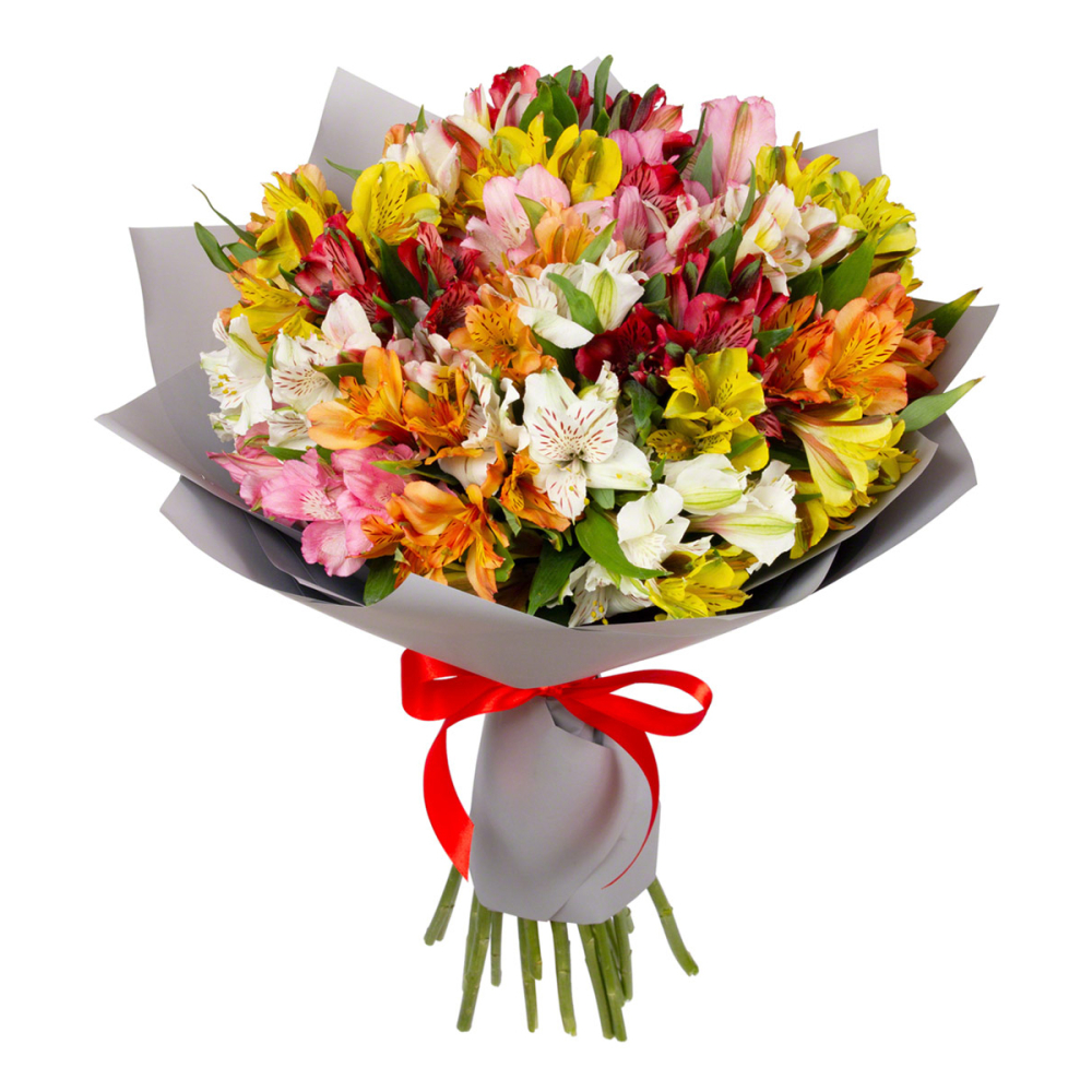 Яркий букет «Рассвет» из разноцветных альстромерий — это взрыв красок и эмоций!