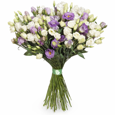 Изысканный букет из белых и фиолетовых эустом – гармония контрастов