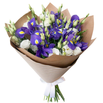 Утонченная композиция из свежих синих ирисов и нежных белых эустом – воплощение элегантности и чистоты. Идеальный выбор для особых моментов. Цветы с доставкой Вытегра.