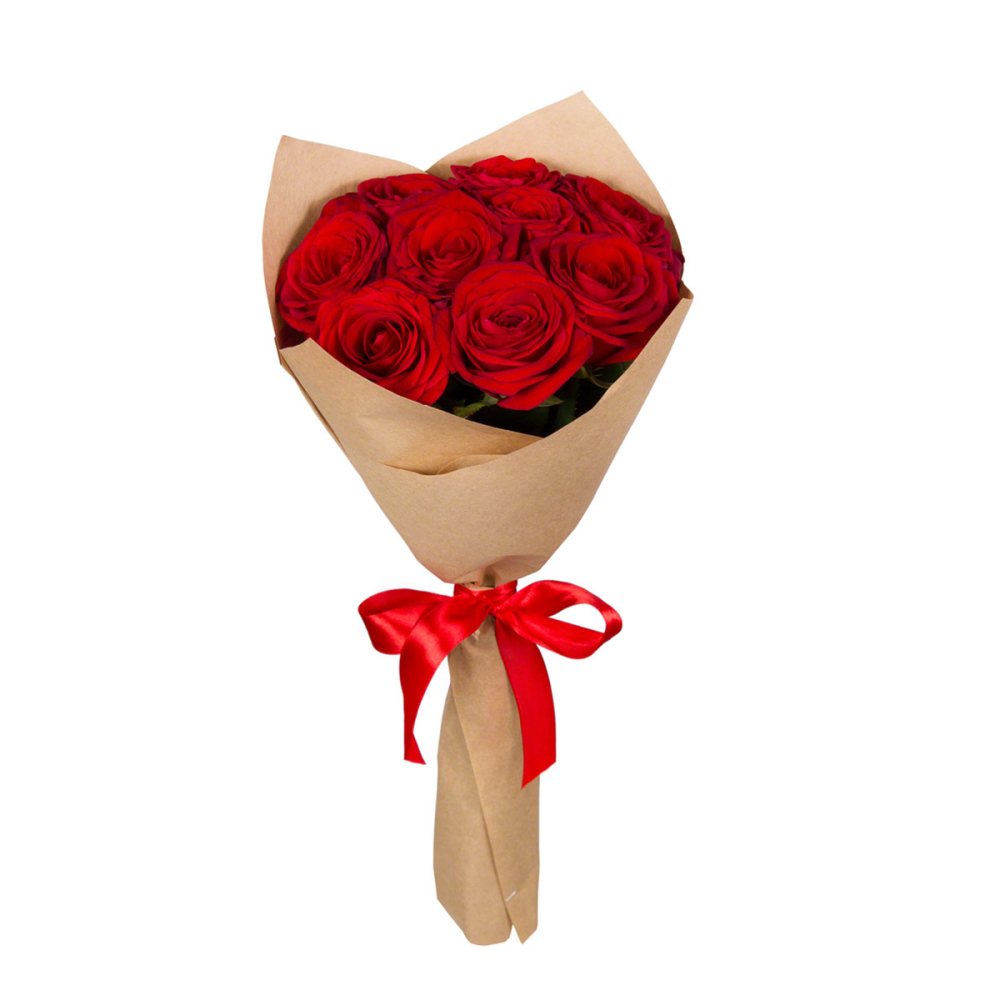 Букет из 9 красных роз в крафт-бумаге